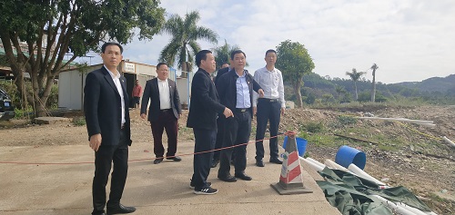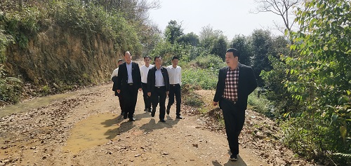 張時義書記(右2)一行到龍?zhí)端畮鞕z查庫區(qū)周邊環(huán)境衛(wèi)生整治情況